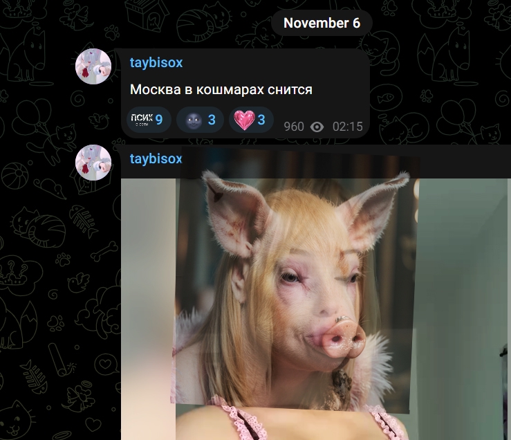 да не, это мефовое животное которое дружит ток с наркоманками и эскорт стрипухами. забейте. Тут не отбелить эту хуйню, образ в интернете няшки стесняшки для инцелов, а сама блядует с буквально бичами) это ор кто ведётся на такую залупу