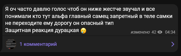 >>25578639 Что ты пытался донести этими скринами? Алёна, парень, скрины за разное время - везде контекста нет. В четвертом это тоже что, доказательство того, что не солевая? Или может просто прикол, или может её модер написал, что имел доступ к акку? Что ты пытаешься донести, что она не девственница или что потаскуха? У тебя не получается, как и не получается считать, обиженный бывший симп >>25578727 А эта борода обиженная откуда вообще может знать что-то достоверно? Используется как аргумент, но по факту просто тянутся к авторитету для даунов такие же дауны, веря на слово во всём.