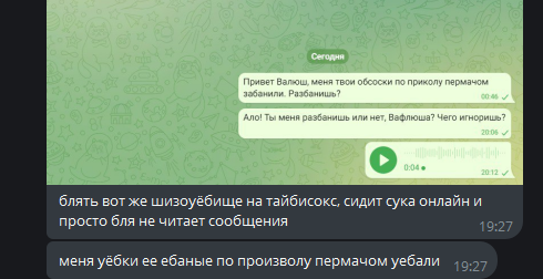 ну ёбаный врот, транса уже была забанена, но я как-то так попал в загрузку что ещё видел 5 секунд как она в ахуе смотрела в моник ненавидьте себя крысы, хотя кому я говорю это не зрилы репортят...