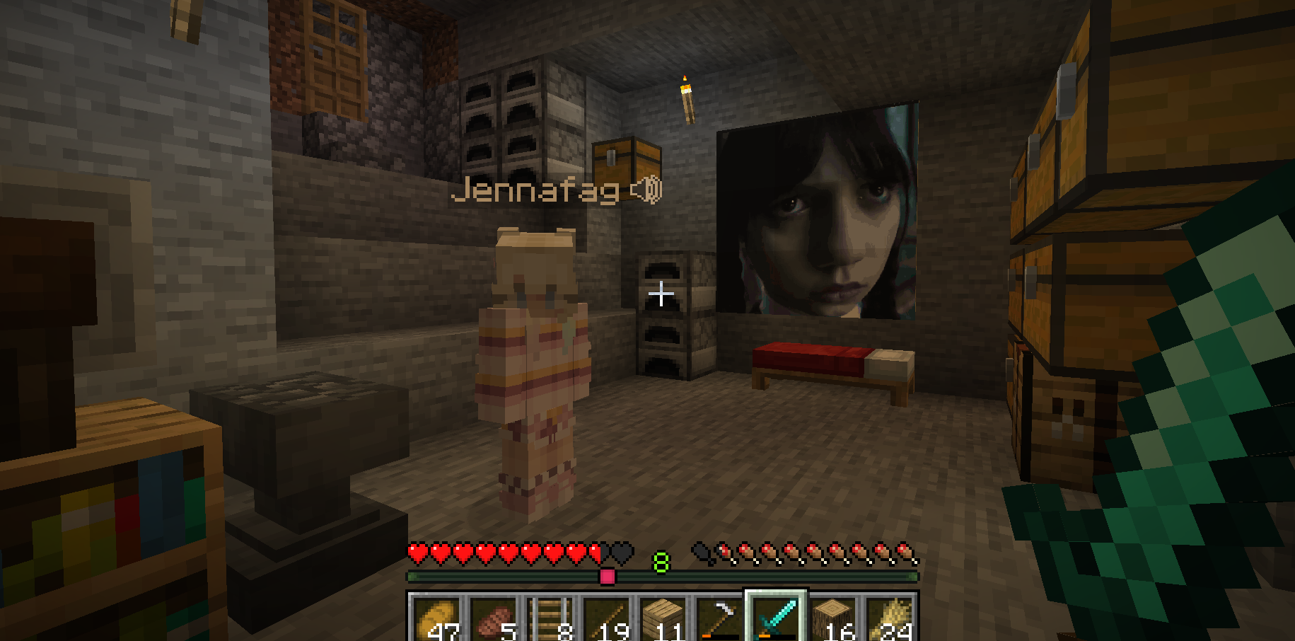 >>25598078 >А кроме посадки леса алмазных бенисов делать ещё что-нить будем? Эмм, не знаю что ты хочешь от ванильного майнкрафта. Аутично копать, сурвайвал хард кок Дракона победить убить, строить невермор по кирпичику. Инидкину половину вот думаем как украсить пока >Со своим скином можно? Да, любой в интернете >>25594860