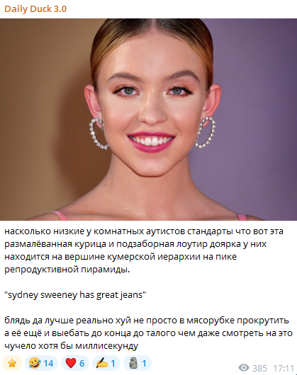Меня просто пиздец как бесит нынешняя Юняша. Вот если кто-то раньше говорил, что она фейковая. Нееее. Это вы еще не заходили сейчас к ней на стрим. Воооот ща там ваще пиздец нахуй. Читает сообщение и быстро реагирует, даже не думая, что прочитала. Быстро что-то ответить на автомате, будто нейросеть. Никакой диалог поддержать, ничего. Просто гыгы и идем дальше. Смеется фейково после каждого не слова, а СЛОГА: "ой хихи тач хихи спа хихи си хихи бо хихи за ихих до хихи на ихих Т" Единственный вариант заставить ее говорить на сообщение в чате, это задвинуть что-то, чтоб она тебе опять лекцию по феминизму начала часа на 3 хуярить в ответ. А так пиздит какую-то хуйню никому ненужную про свою гончарку, да как пиздит, она даж не может договорить и предложение. Потому что там либо хихи либо спасибо за донат блядь, а донатят там ебанаты часто просто по минималке. И как это смотреть блядь? Не, бабам реально нельзя стримить. Просто пиздец. Они не понимают как это делать. Да они никогда не скажут "так блядь харе меня заебывать сука ебаная своими 50 рублями понял блядь?" или просто повысить минималку на время. Будет весь стрим сидеть и общаться с ебанатом по итогу по типу тача