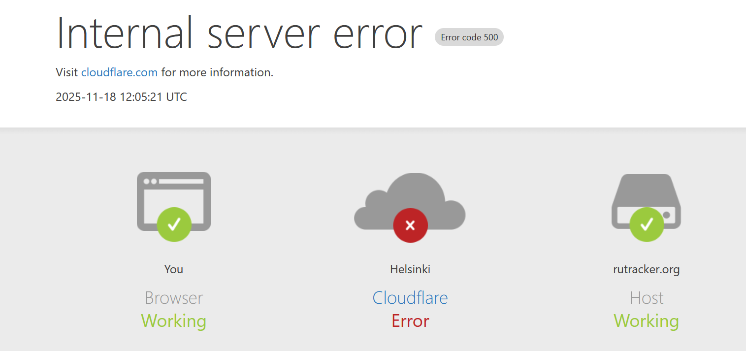 Оператор облачной инфраструктуры Cloudflare сообщил о сбое: у пользователей по всему миру не работают X, Spotify, ChatGPT и другие сервисы