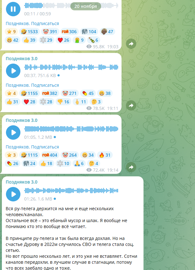 Ебать представьте ебла мокривского и генсухи когда им сказали почистить клипы где они обсирают ару юзю и прадена. Такие типо, А ЧЕ МЫ НЕ ТАК СДЕЛАЛИ? ДА ЧТО ВЫ НА ЭТОГО МЕДИССОНА ТАК МНОГО ВНИМАНИЯ ОБРАЩАЕТЕ, ДА ПОХУЙ НАМ НА ЭТИ ГОЛОСОВЫЕ, что контракт? Ладна ща удалю