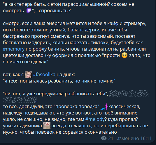 Ну ничего, симп, она действительно может прекрасно обходиться без всяких тусовок и коллаб, пока ты и сотни других симпов будут донатить ей половину своих зарплат.