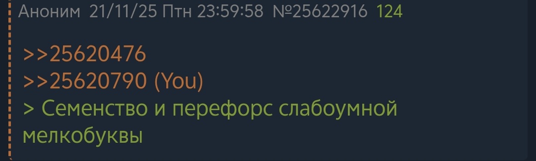>>25622111 Да хуй их разберёшь уже, бролтен. Дикая шизо-фауна так бесконтрольно расплодилась в последнее время, что их сортировать уже смысла не вижу. Бездарный имбецильный детсадовский хейт Вовия = подвальный неандерталец, а лично ли это Дрюня жирный или это его братья по разуму - не важно, слишком много чести им будет.