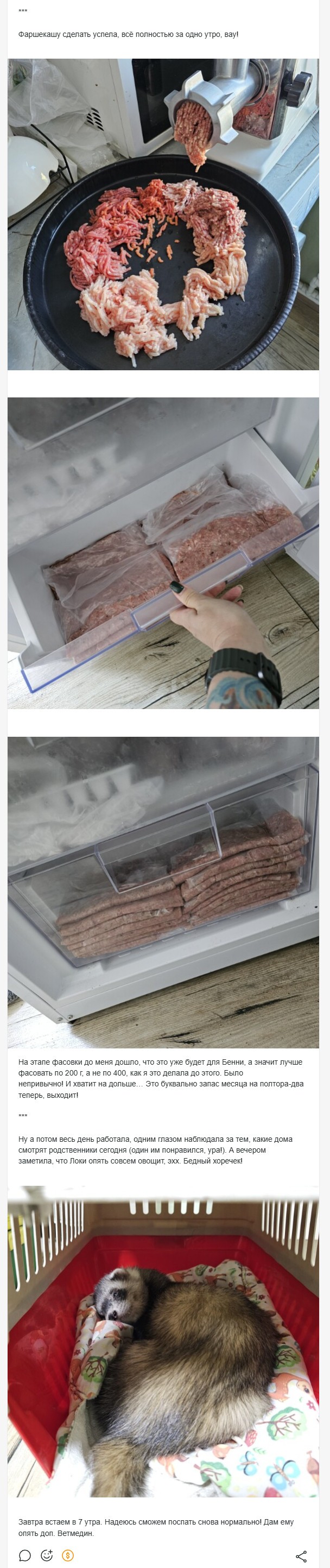 >>25628902 Хорька больного в +3 на балконе оставила, а сама домой. Бабка-то замёрзнет, бедная, а у хорька шерсть, так что похуй. Пусть мучается перед смертью.