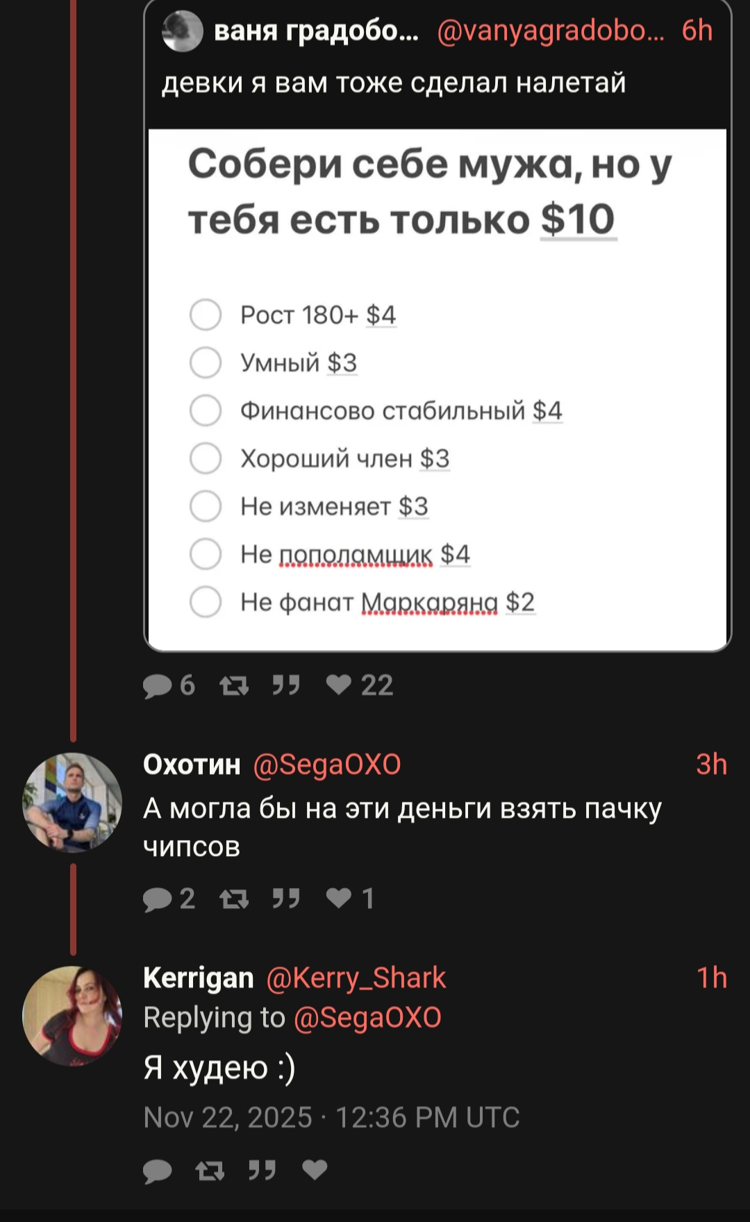 >>25624618 Это вообще так-то изначально не про вовика было (форс про глотание яиц), а про пы4ма он от этого дико рвался. Вот и думай теперь кто это перефорсить на вовика сейчас пытается.