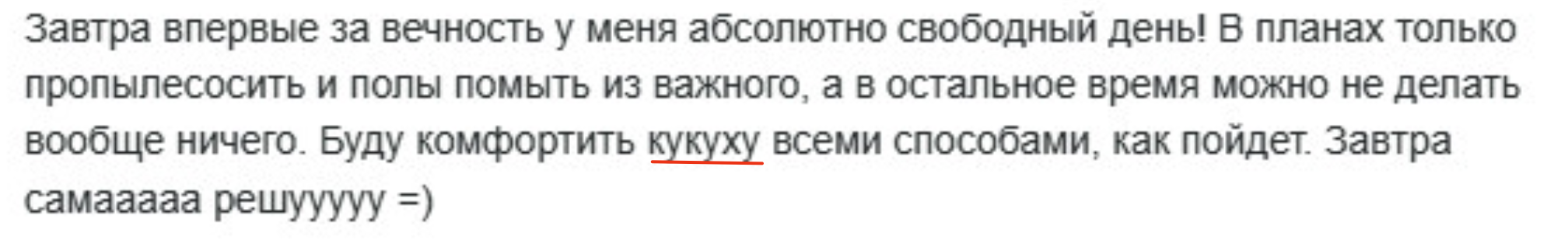 >>25624922 Ждём посты про "наконец-то выспалась, ахах. Хоречков жалко, но ничего не поделаешь. Кстати, купила нового тамагочи, конструктор с озона и новую картину! Бирочки в график вклеила, надеюсь, буду успевать, творчество очень успокаивает".