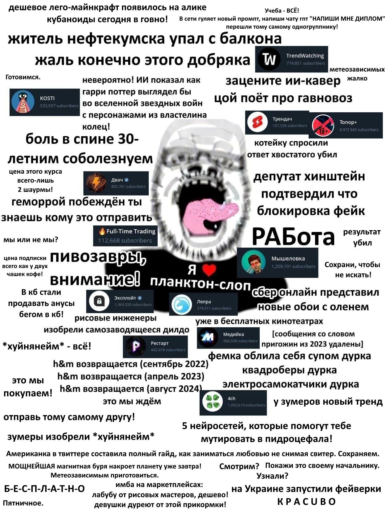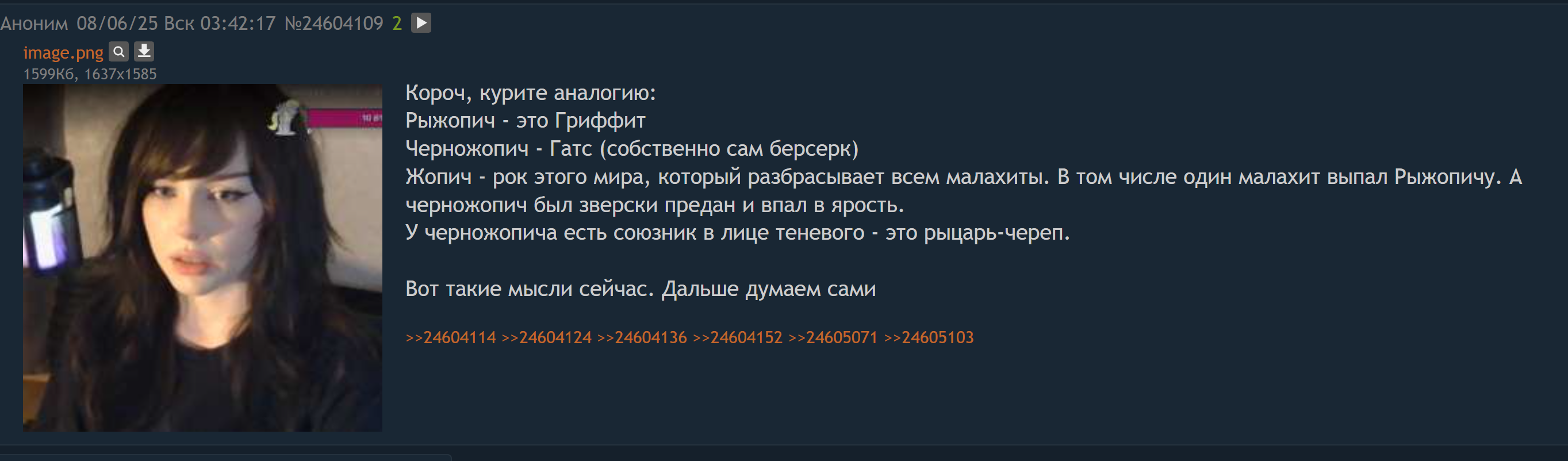 >>25631486 Слышь, дерьмо, чтобы там ни было, мы должны сплотиться вокруг Ильи. Мы его тред, его малютки, слуги Короля. Он в одиночестве пошел против твич-истеблишмент, глубинного государства. И поэтому ему сейчас как никогда нужны ресурсы от слотов, время на планирование, из-за которых он не стримит основу, и наша единогласная поддержка. Чтобы он ни делал, значит так надо, значит есть на то причина, потому что мы идем к великой цели — будущему, в котором время крыс закончится!