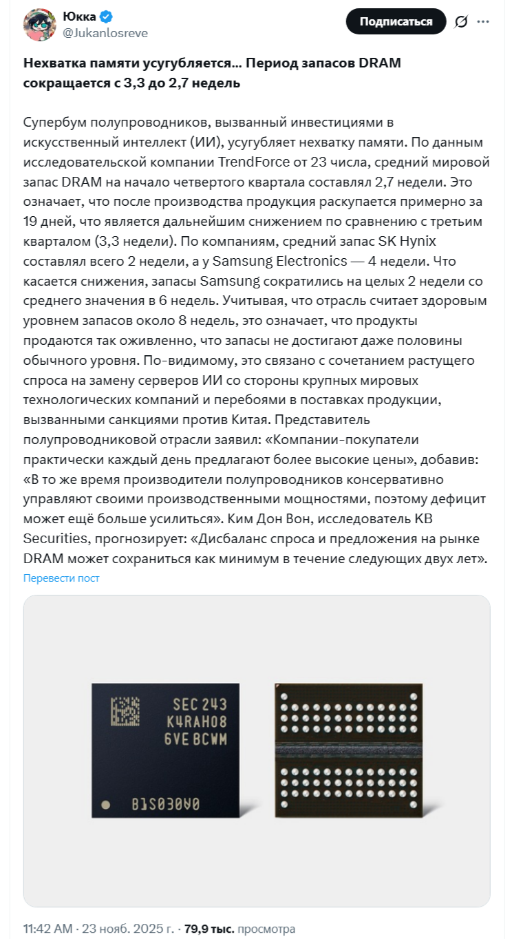 >>25637000 Похуй, сейчас нарастят производство, корпорации закупятся и когда они утолят свой голод а производить продолжат штамповать, склады забьются начнут их выкидывать на рынок по себестоимости. Потом у корпораций начнется обновление мощностей через пару годиков и они БУ память выкинут на рынок, будем пановать. За тарелку борща покупать планки 32 гига.