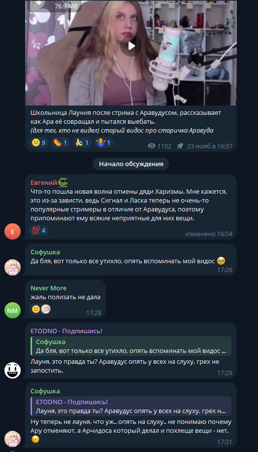 блиииин ребят ну как так оказывается, что у всех подсосов меда не больше 500 живых зрилов сидит, а все остальное накрутка, ну как же тааак, Диана нахуя ты это всю эту войну ботоводскую начала, давай на мировууууую