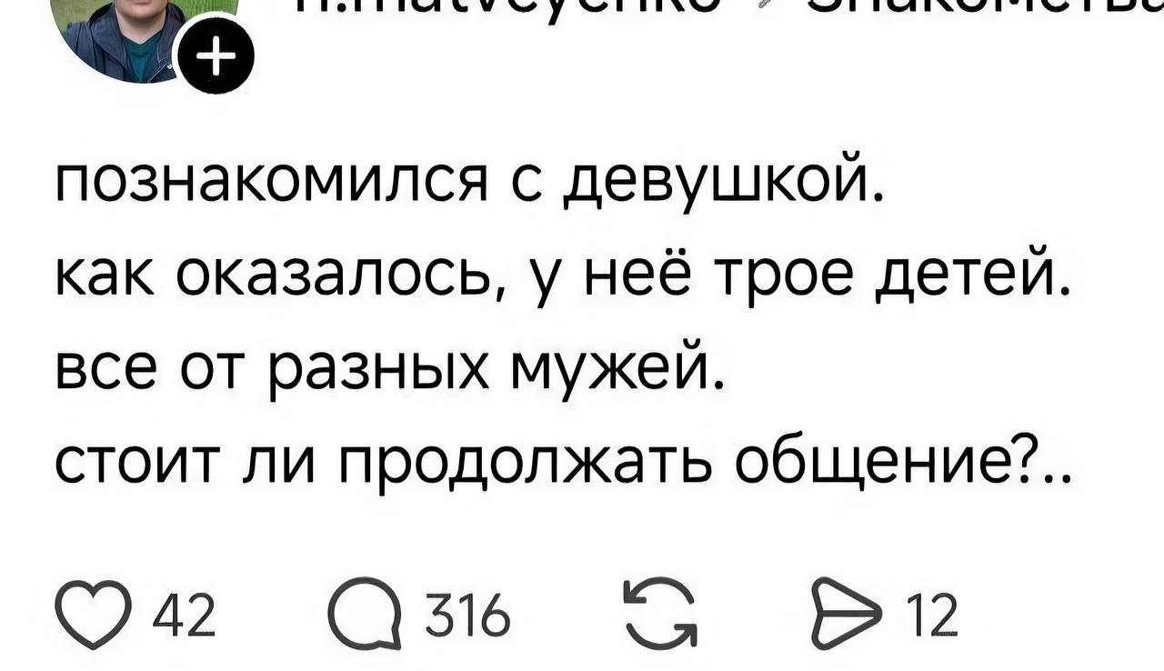 >>25637386 Стоит, дети это счастье. будешь сидеть с ними вместо няни, оплачивать им еду и одежду будут предыдущие папаши и государство а ты сиди покупай пивасик и шашлычек на эти деньги, просто чеки подделывай что купил детскую одежду и питание. Выдресируй их там что бы они сами по себе были и живи кайфуй, плюс жену отправь на работу. >>25637406 Опасно, там походу бизнес модель такая брюхатится и потом жить на алименты+ от государства. Плодовитая залетит на раз два три, вагиной зажмет твой хуй и выжмет все в себя, опытная хули.
