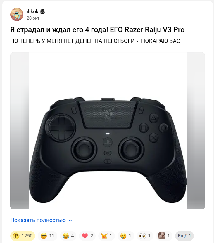 >>25638766 Это да, он в статье пишет, что у него руки атрофировались и он не может играть, а тут 28 октября мечтает о джойстике, и ещё там 9 ноября пост, что он в вальгаллу играл. Скамер, давящий на жалость.