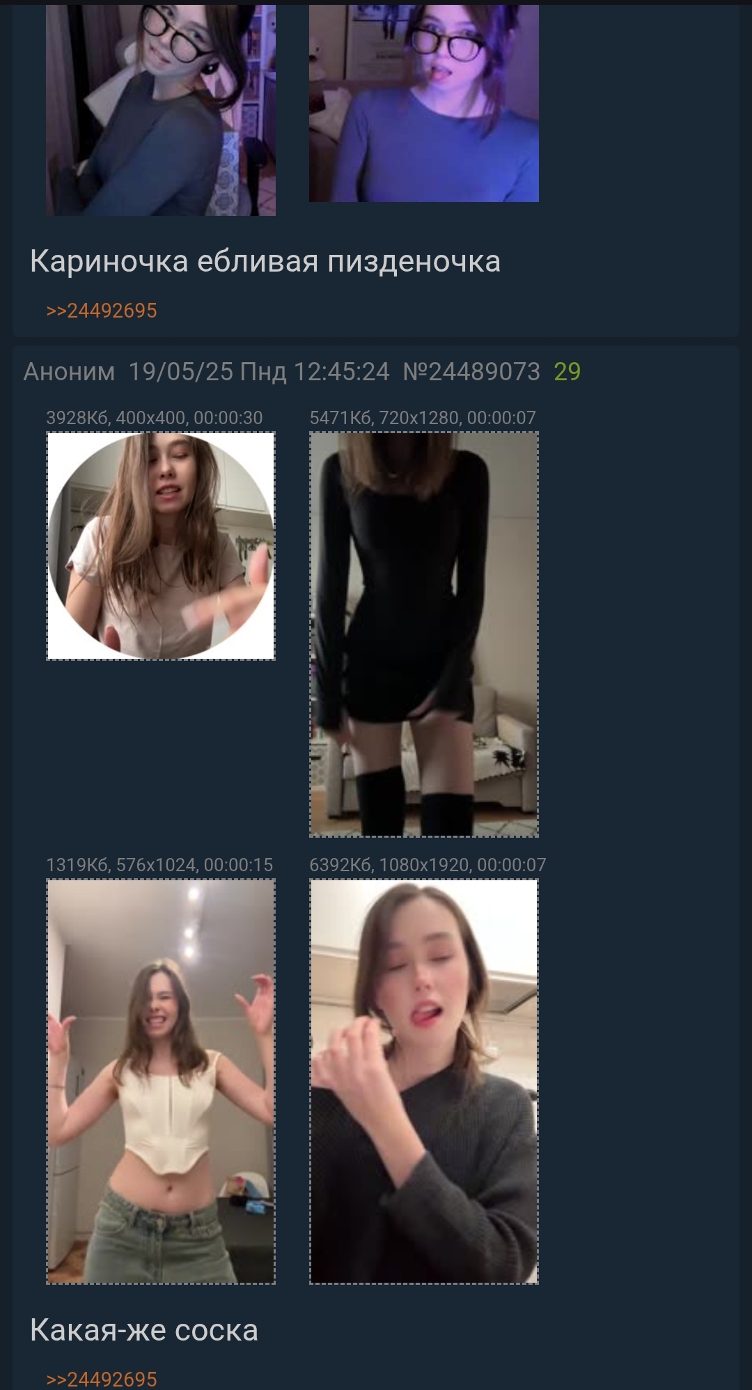 >>25611334 >>25611293 Карина статная девушка. Выглядит как арт объект. Мне тоже ее трахать не хочется. Зато хочется покупать ей наряды, много разных нарядов. Очень успокаивает, когда красивая длинноногая девочка примеряет платья, юбки, топы. Приятно наблюдать за тем, как она примеряет обновки. Пройдет туда-обратно, посмотрит в отражение, поправит одежду, повернется сначала одной стороной, потом другой, снимет тикток. Один, второй. Думать об этом доставляет большое удовольствие, а наблюдать за этим воочию наверное настоящий экстаз! Просто посмотрите на ее взгляд и улыбку. Ради такого должно быть не жалко никаких денег.