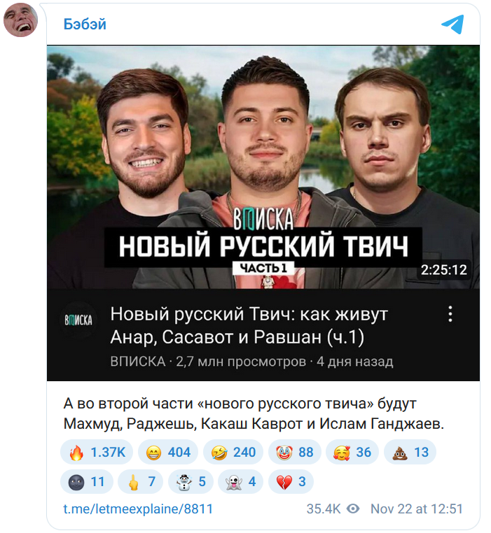 У этого педика с канала Вписка был недавно Марк Эйдельштейн (актёр из Аноры). По телеку сейчас реклама с ним повсюду. Активно очень начали продвигать пацана. И Вписку с ним сняли тоже полюбому заплатив. Этому педику просто платят чтобы попиариться. "Новые топы твича" эти тоже наверняка лунопопики чьи-то. У них как у баб теневые есть, которые их ебут и одаряют