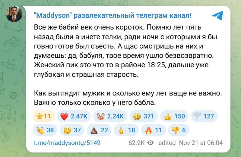 >>25653345 та чел на неё ствол парафинил 10+ лет сидя в сибири, а это в сути обычная баба, к тому же особо умом одарённая наташка, алкотка, быдланка, давалка