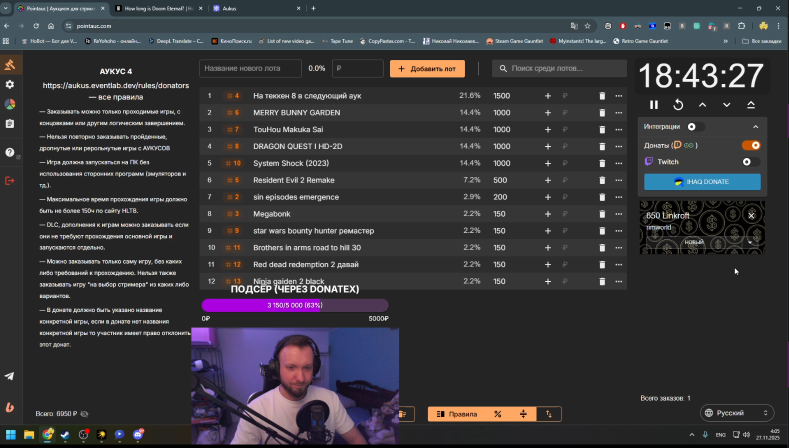 чмели реально же смотрят 5 человек, уровень зедапа, может любые игры себе выбирать и проходить, никто ничего не поймет, весовая категория в спорте не просто так придумана ведь, а тут он её обходит считай, кто-то на ауке может просидеть 3 часа, чтобы ему выпала жрпг на 100 часов, которую стример потом дропнет, тем времени чмели себе закидывает на условную калду, аук заканчивается спустя 20 минут или сколько там таймер, игру саму пройдет за 5 часов и можно приступать к следующей. тем временем какой-нибудь чмелхарукос будет час на ауке сидеть, час играть до дропа и потом опять час на ауке сидеть. короче чмаска реально просто другана решил протащить, вот только это уже 3-й аукус, в котором чмели участвует, а зрилов как было 5 человек, так и осталось, это уже даже не уровень бустов зедапа.