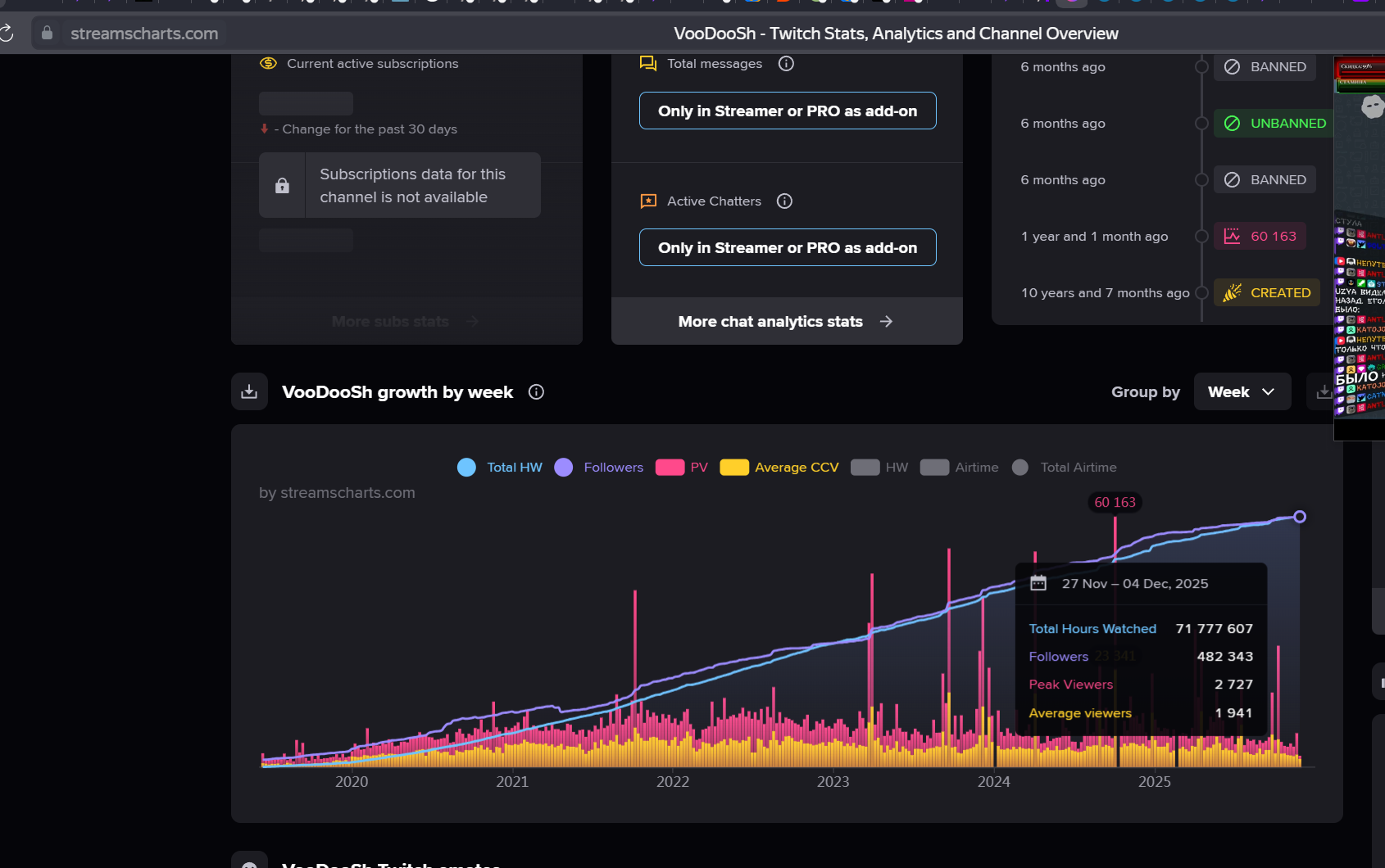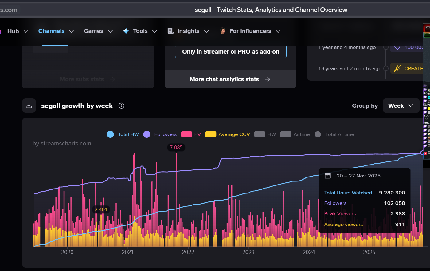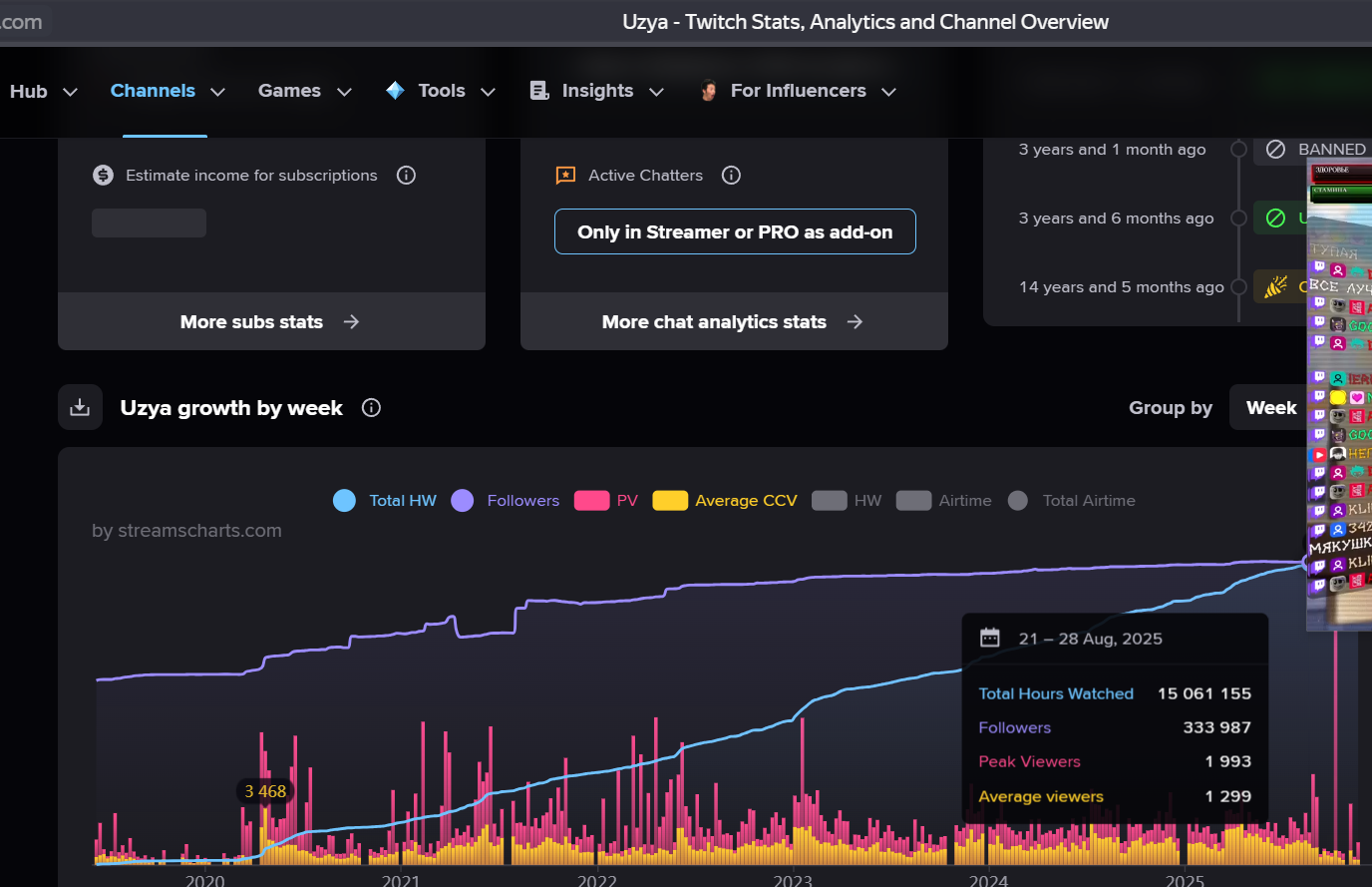 >>25654460 еще один даун не умеет твитч трекером пользоваться, у прадена с 2025 по 700-1к на стримах. Иногда даже до 20к крутили. О каких 200 ты говоришь? Этого даже в 2024 не было толком