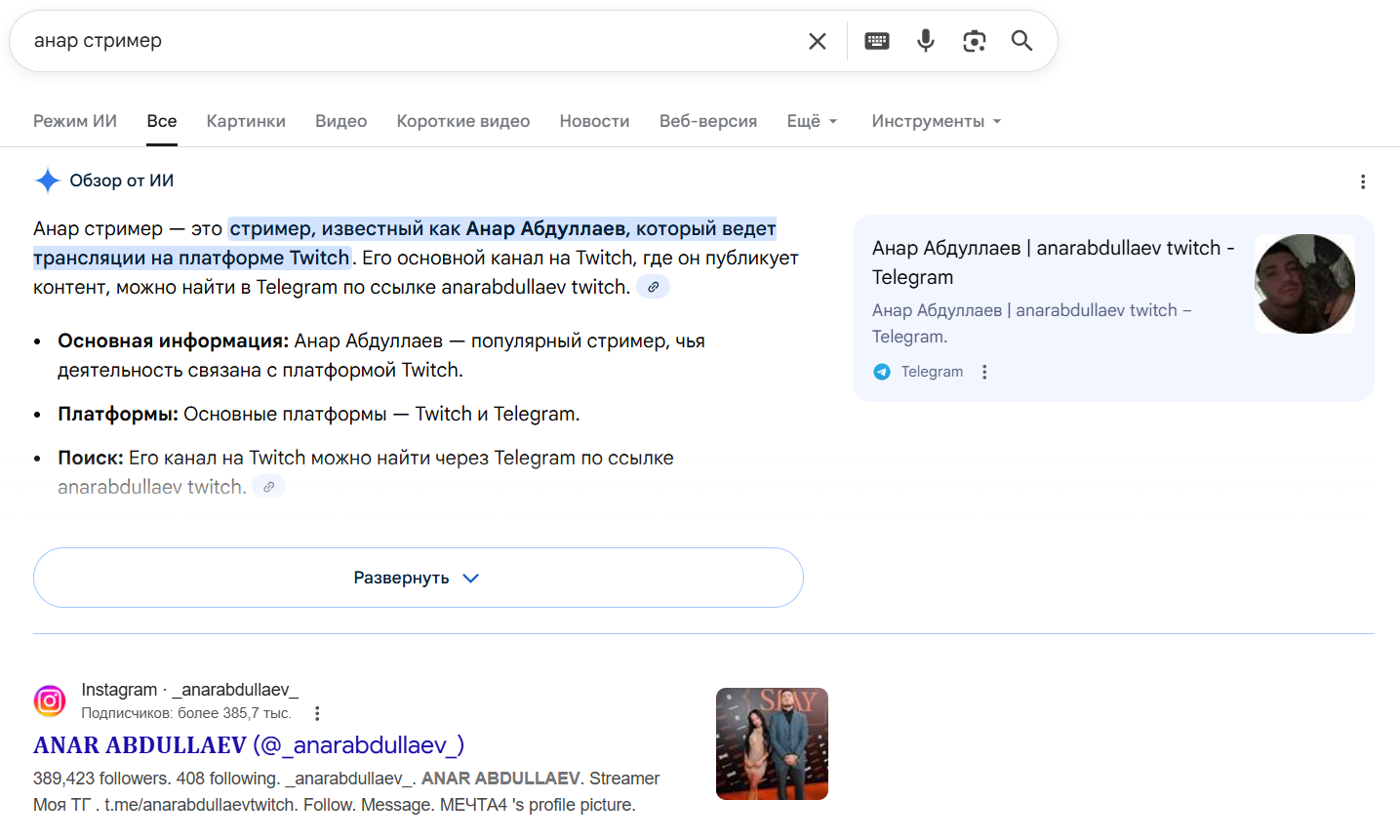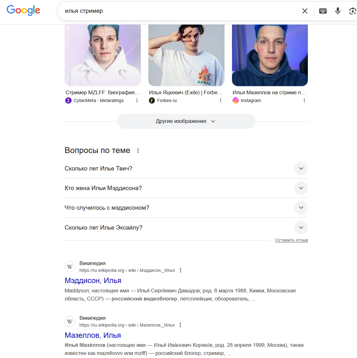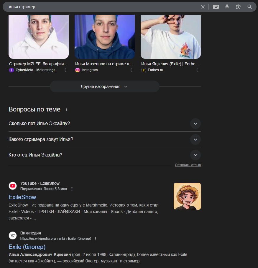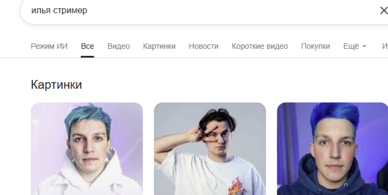 прикиньте, мне пришлось дописывать илья стример чтобы я смог его найти, потому что сначала нашло значение имени. А при добавлении илья стример вообще нашло мазелова, лол