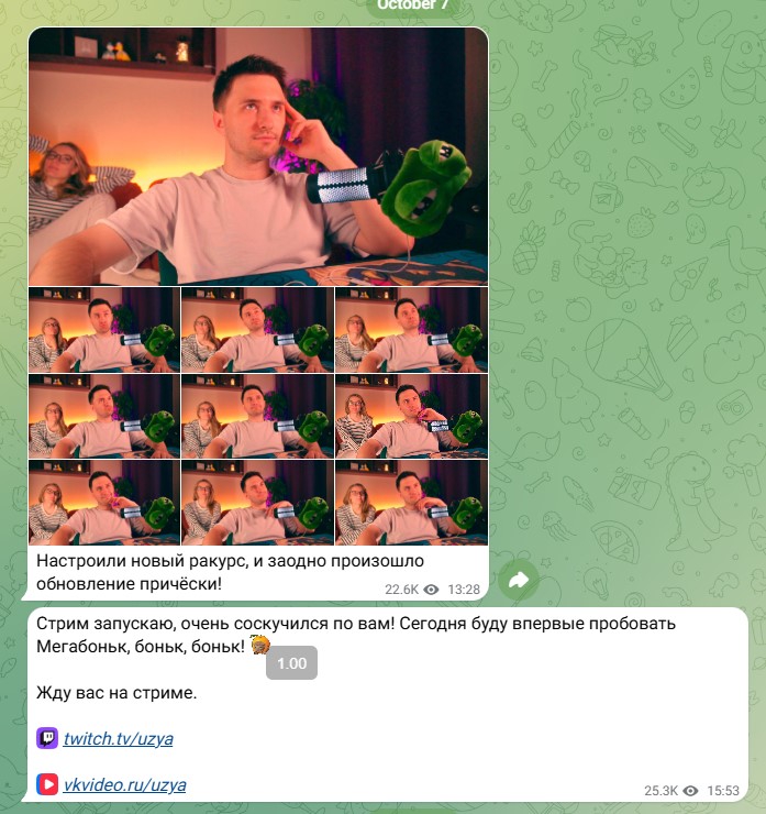 бегом сёдня к мартышкину на стрим палить кривляния под даунские тиктоки, и чтоб без опозданий, опёздал подпивасный