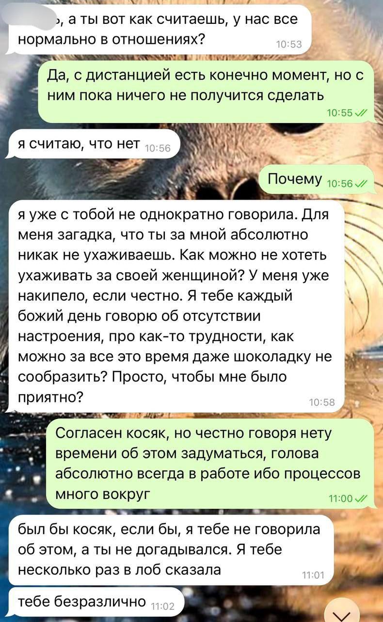 >>25655803 >Не является ли большим вёрджин классиком терпеть какую-нибудь мегеру, боясь ее потерять и остаться одному. Ментальные девственники, вскочившие в отношач, обычно так себя и ведут Да большая часть мужиков всегда в тряске, что потеряют бабу и останутся одни. Будут терпеть и будут придавлены под каблуком, но также будут в трястись, что баба от них уйдет. Исключения только какие-нибудь чэды, которые баб меняют как перчатки; те, кто ебёт совсем уж каких-нибудь всратых огров без чувств, типо Каловика и всяких шлюхоходов в браке; ну и алкаши и нарки какие-нибудь, ну там у таких и бабы такие же, уходящие и приходящие, эти вообще не в счёт. Кстати, 80% разводов тоже по инициативе баб.