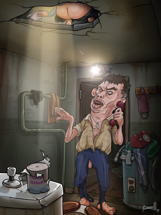 Я дико прошу прощения и извиняюсь. Мне нужен рисунок с Гладом Валакасом, на котором он стоит в туалете, в потолке дыра и из неё торчит жопа соседа. Это по мотивам его звонков юристу. Просто я искал на этой доске и увидел что в этом треде деда часто упоминают. Помогите, пожалуйста.