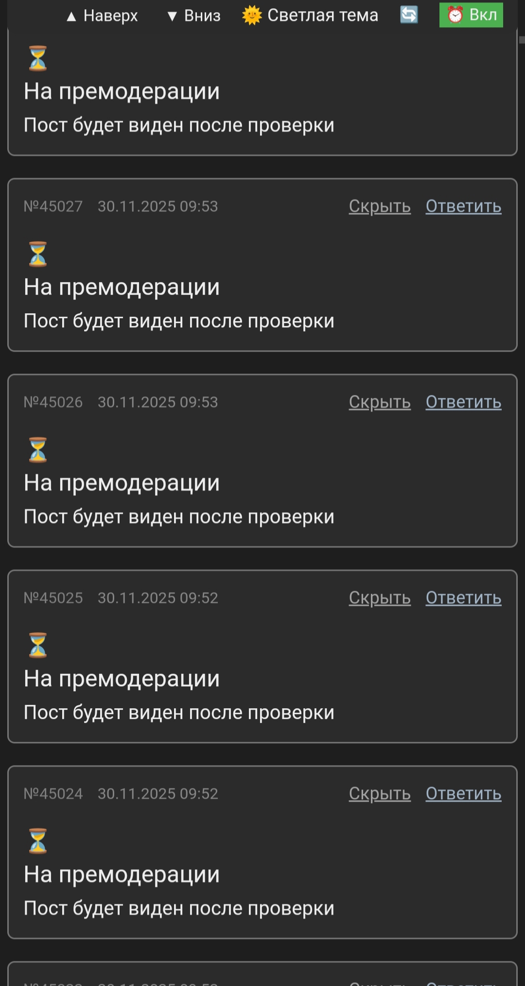 Я бы на месте пердинатыча такую штуку сделал, что постинг скажем за некие условные баллы. Например хочешь запостить это 10 баллов. Но сообщение попадает на премодерацию. 50 баллов срочный постинг - ильнарка как можно быстрее посмотрит и одобрит твой пост лично. 100 баллов - постить сразу.