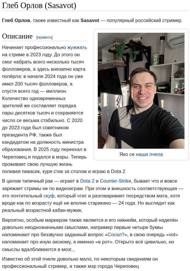А Сережка не ебал? Был такой персонаж, по вахе угорел в последнее время.