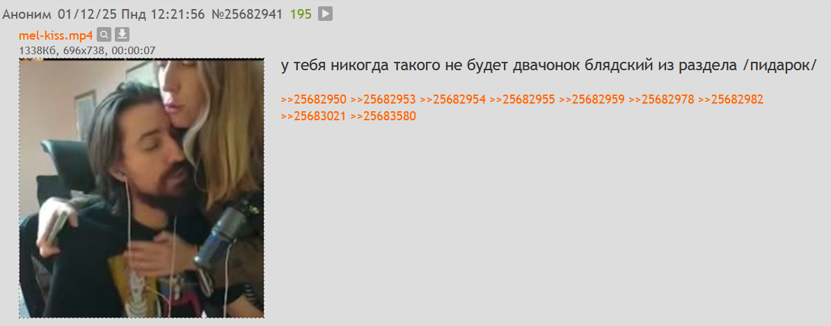 чел пришел в калсос тред (ИМЕНИ ИЛЬИ МЕДИСОНА), чтобы излить свои патриотические чувства, но вместо этого, ему излили струю мочи в рот. просто имаджингируйте уровень интеллекта этого стекломойного долбаебика