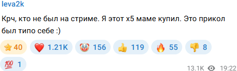 >>25664319 лев для своих корешей не такой скупой, хоть и бабки он и не переводит, но тусят они за его счет, плюс технику дарит часто. Вчера баню закрыл под 200к