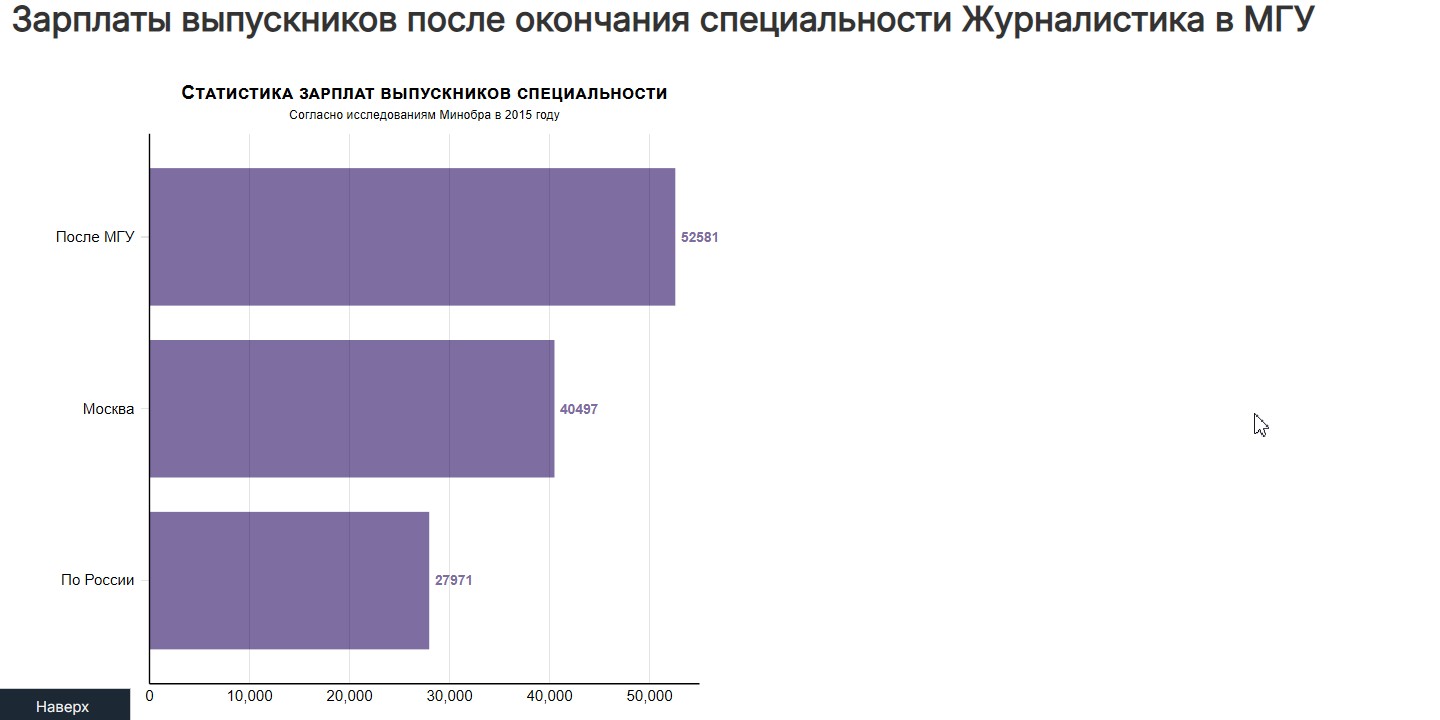 связи... https://tass.ru/ekonomika/24347383 ыпускники МГИМО, занятые в экономической и финансовой сфере, в первые пять лет после окончания вуза зарабатывают в среднем 200 000 рублей, за год их зарплаты выросли на 20 000 рублей (+11%)", - говорится в итогах исследования.