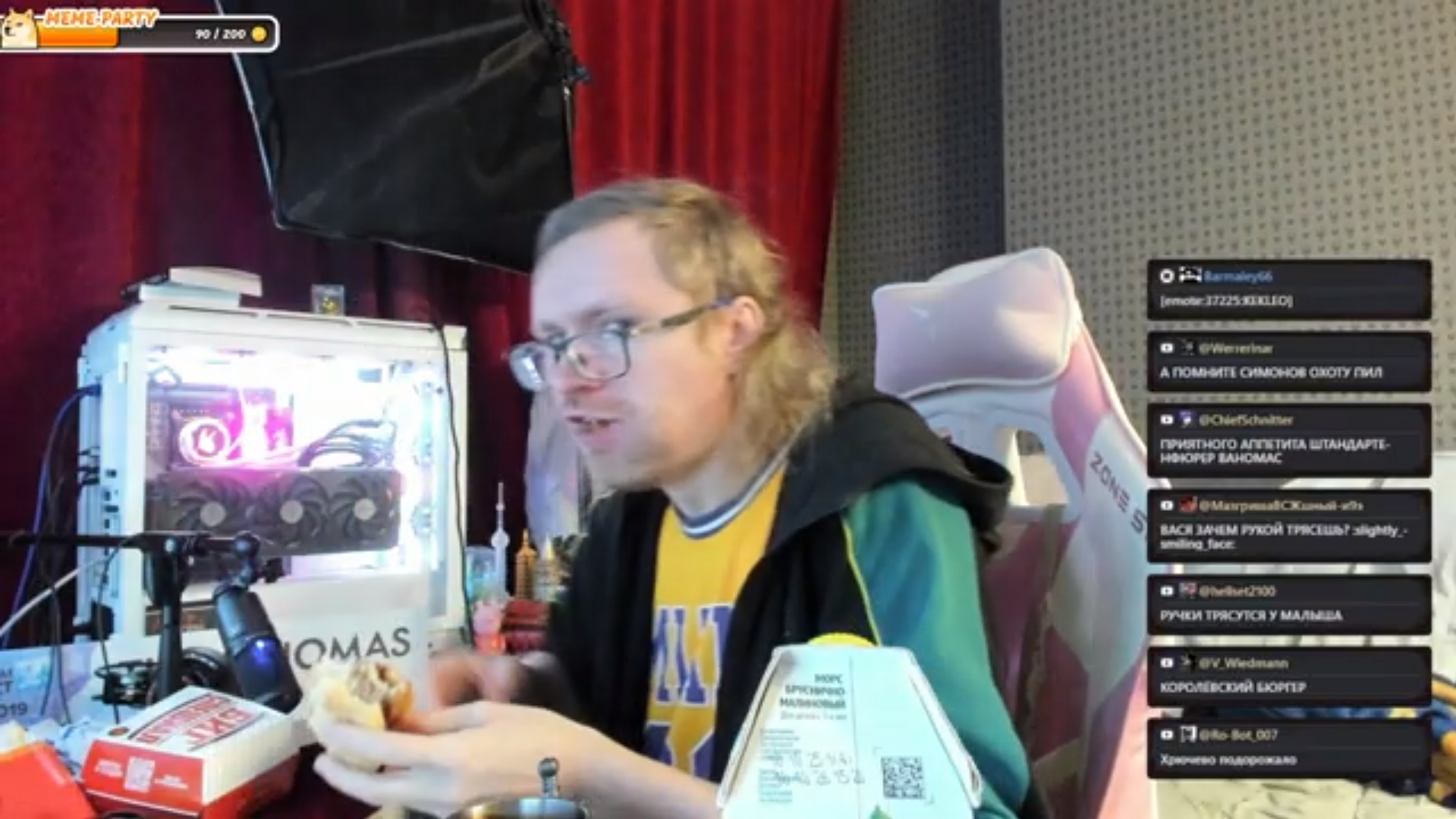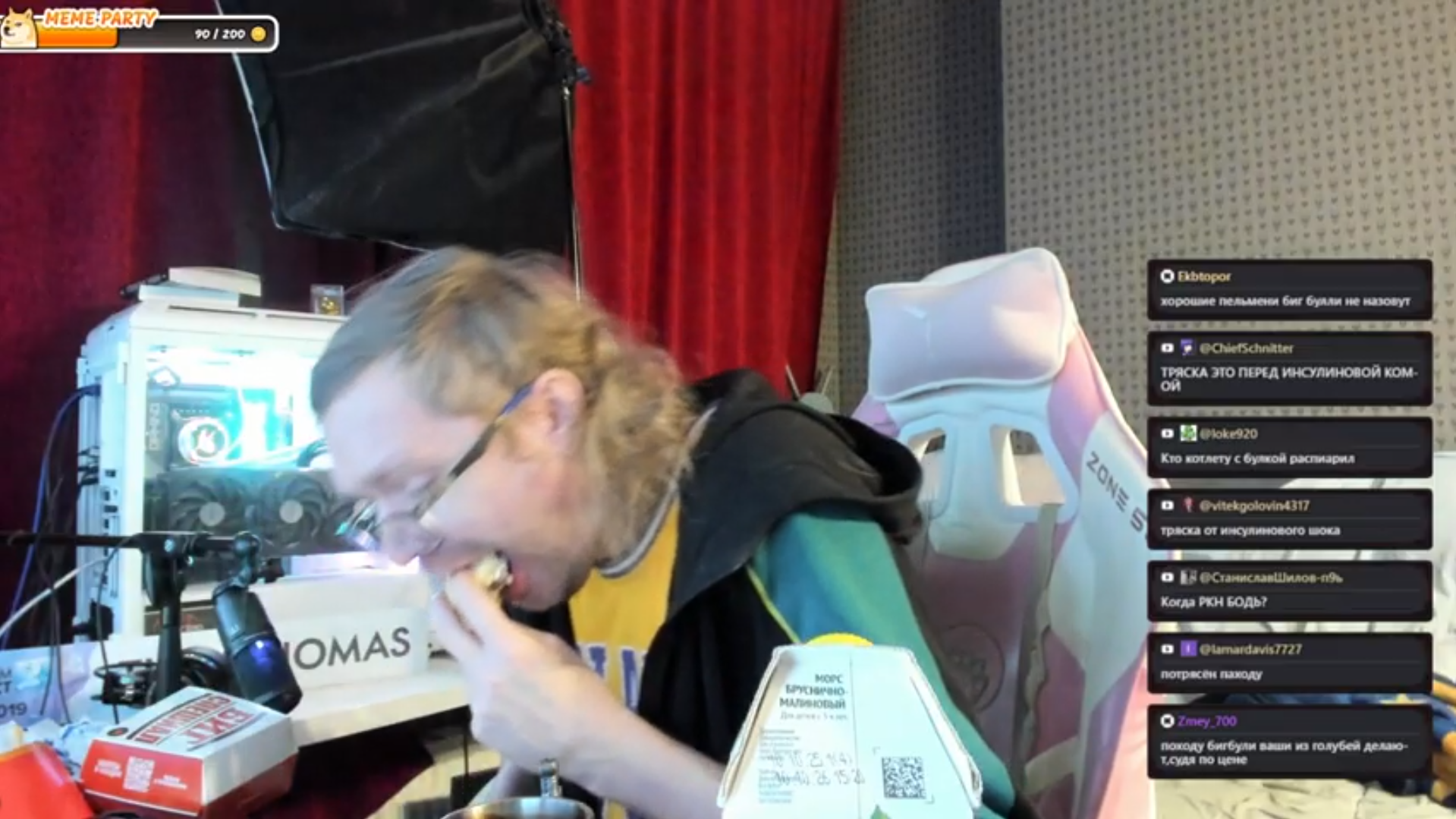 даун... 10к за час сидения на стул - это все равно много. Бомжу нужно 4-5к за стрим,чтобы в конце месяца иметь 80-100к. Только х___мрази могут говорить, что это не деньги. Бомж просто жрет перед камерой, смотрит YouTube и играет в игры, при этом имеет хорошую зп челевека, который работает 8x20.