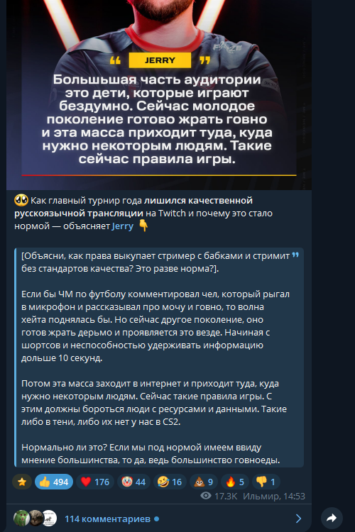 Как главный турнир года лишился качественной русскоязычной трансляции на Twitch и почему это стало нормой — объясняет Jerry