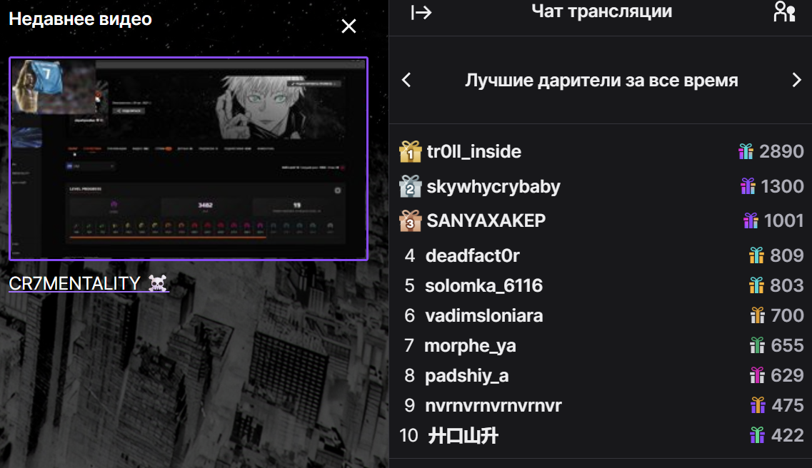 >>25691979 Дура просто. Во-первых ее пиздеж очень палевно выглядел, ну ебать как тупо пиздеть про то, что ты вообще не смотришь чела, при этом у тебя на фулл ебало светится статистка за год с сука 2.5к сообщениями и 100 часами просмотра. Тем более она до этого говорила, что до того как он ее позвал в кс летом она не смотрела его и только по нарезкам видела. Хотела подлизать его фанатам или че