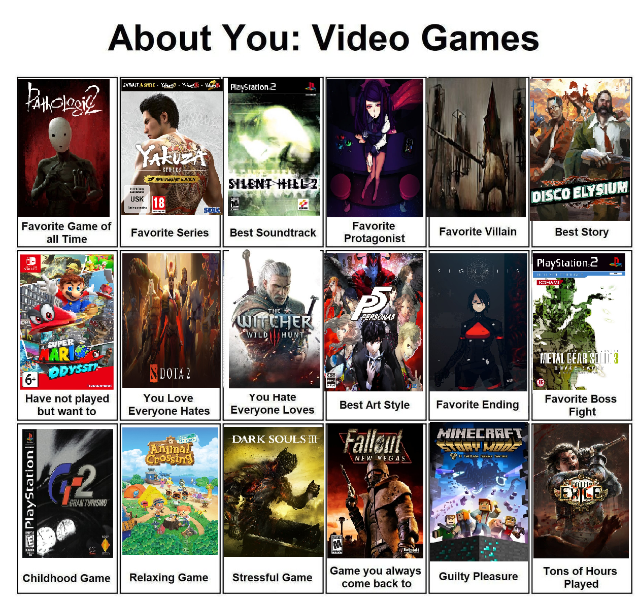 >>25689504 Да хуйня все эти списки, я люблю в новое играть, уже давно не перечитываю книги, не пересматриваю фильмы, нах надо. Еще там сидеть какого то любимого персонажа выбирать, я же не ебанутый. В этом году прошел вампиров вторых и ккд2, мне понравилось.