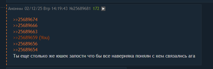 >>25689377 Тут, блять, 90 процентов это боты которые сами с собой переписываются, и из-за этого тред летит в бамп лимит, а ты хочешь, чтобы они вайпали бесконечный