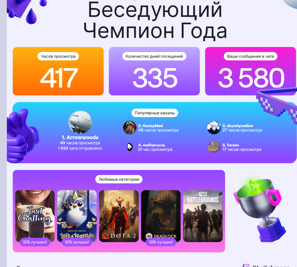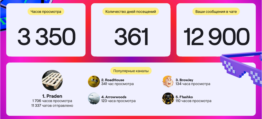 Откуда у вас у Ильи Мэда 80 часов просмотра если у него на твиче было 2 стрима за 2025 - обла весной и фурри-стрим в сентябре? Вы крутите себе время просмотра?