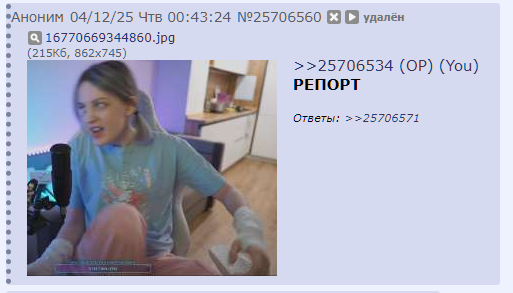 Удивительно, что после сегодняшнего позора кто-то до сих пор продолжает срать в треде Рыжопичем, если это не троллинг тупостью. Она своим поведением трупа буквально чуть не запорола стрим в который было вложено максимум усилий. На месте Ильи и администрации забанил бы каждого, кто её форсил и просил позвать на стрим. Такие люди заслуживают бан в тг, на твиче пермач за упоминание, а в фаге бан по подсети.