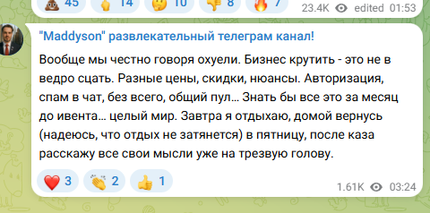 Илюха база 3 раза. Вызвал тряску невероятную у симпов ненормовы, позвав унылое говно рыжопич. Уровень тряски оказался в разы выше выписки ненормовы из мафии. Легенда нахуй. Теперь еще какое-то унылое говно на слоте бабы добавить на ивент и тогда тряска вселенского масштаба начнется. Столько людей сняли с себя маску «я не симп и никогда им не был», я такого не ожидал. Мудрый человек Илья Мэддисон