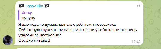 >>25708225 Возможно она встретила Корю и приняла её предложение пить водку и... нашла себе достойного противника в соревнованиях по поглощению алкашки. Вот и бухали у себя в углу, у Кори всего два кружка в ТГ с афтерпати.