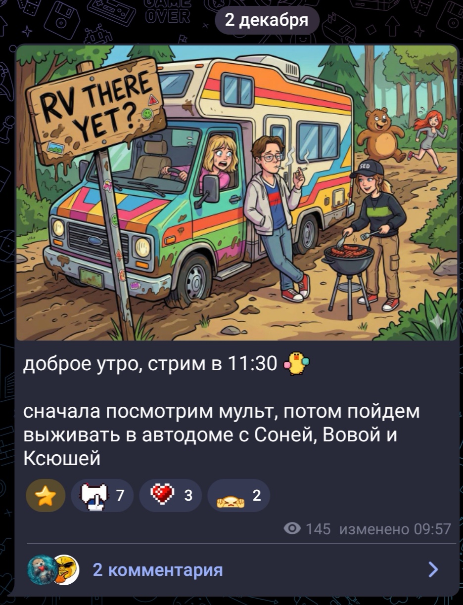 - интерактив с папищеками. скиньте ёлку там, обзор на сычевальню, дискордик, вр-игры со модераторами, звать на стримы виперов, раскрывать лор своих олдов почаще