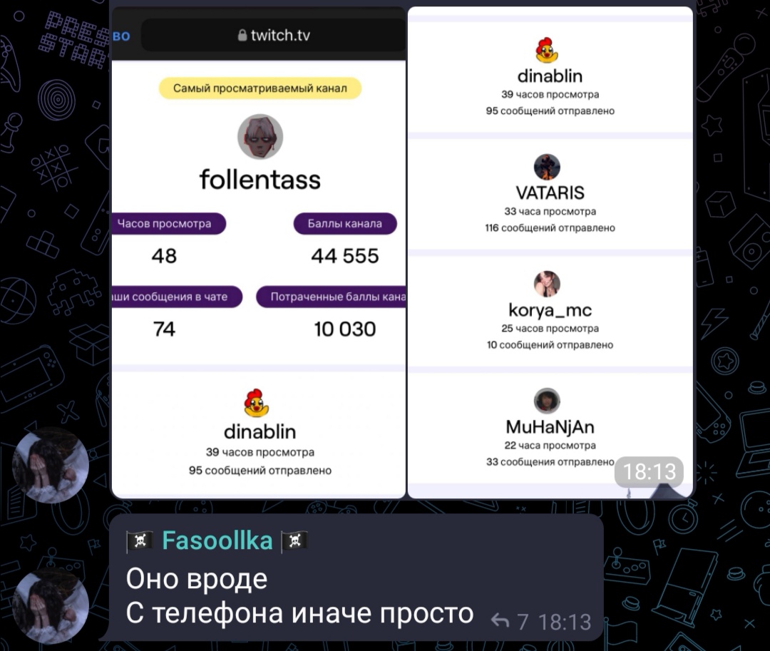 >>25692062 да неплохо >>25691983 Ну чел согласись подозрительно,что она скидывает презентационный скрин статистики стримера, просят показать скрин как зрителя называет 6 имен из головы, хотя там топ 5. Потом скидывает презентационные скрин преданных фанов. И у же потом,когда подметили что она 6 имен назвала,а не 5, она кидает скрин со статистикой зрителя и там нигде нет подтверждения,что это ее стата. + зная как она смотрит ЛинуНеон, ну никак не поверить,что ее нет в списке просмотренных даже на 22 часа)) Так что мысль сама наталкивается,что стата левая