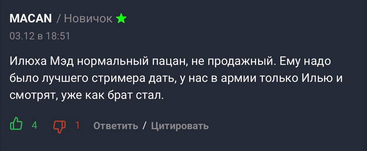 >>25712096 да поэтому у илюхи тряска от него жесткая, видит конкурента, сасавот новый папич, анар новый мэддисон, даже форс про маленький член у ильи подрезал