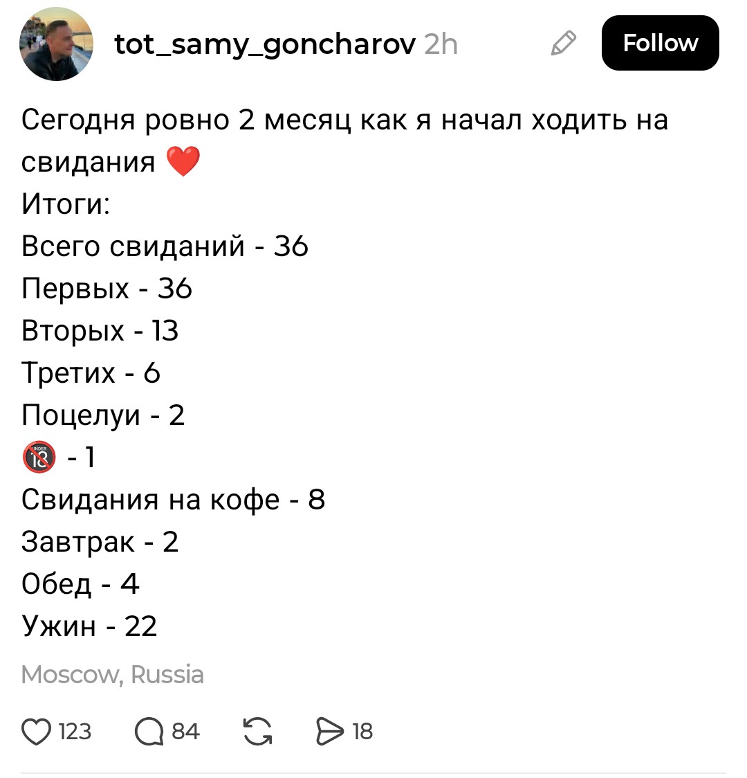 >>25717099 Какие нахуй свидания. Еще раз, берешь телку с дайвинчика, ебешь ее, блокируешь, все, два-три дня, сразу другую, должен быть конвеер. Свидания, лол, еще скажи отношения.
