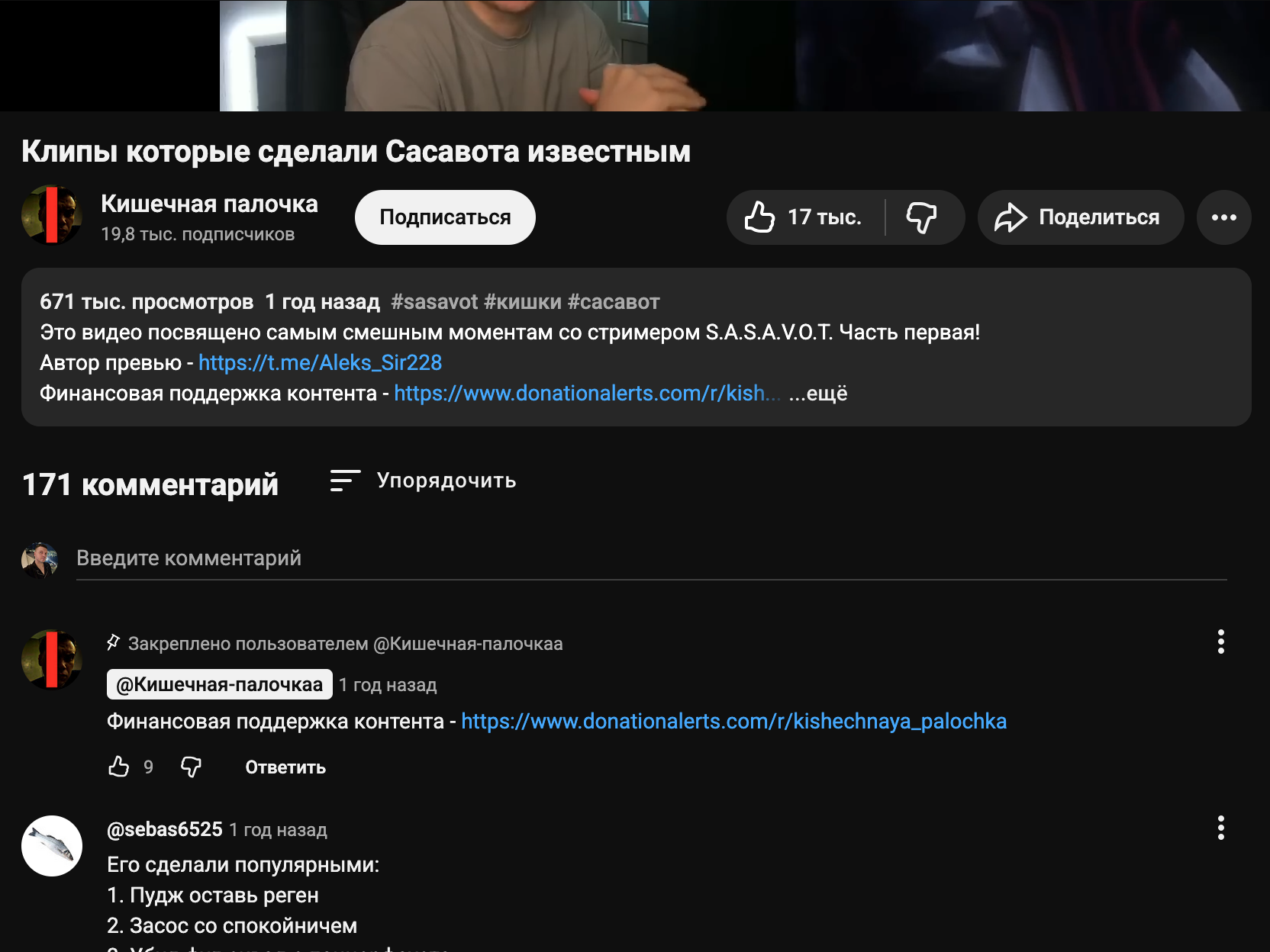 Конечно сасавот мега харизматик, но его аудитория реально дети и смотреть это тяжело, а вот у Анарчика реально топ контент, топ харизма, топ стримы. Не зря он 600 женщин трахнул