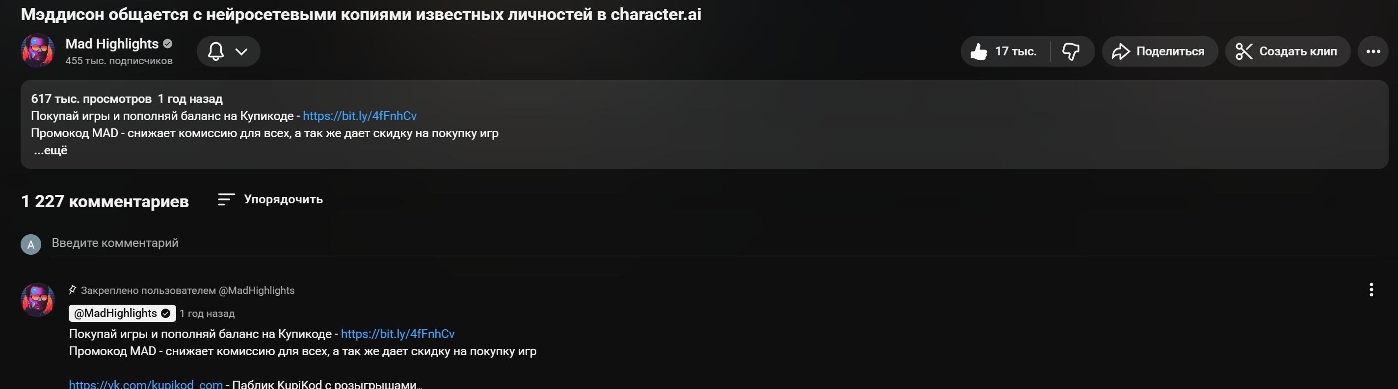 >>25720416 У него так-то нормально комментириев. Ты думаешь, что на 100к просмотров должно быть столько же комментариев? Плюс большая часть из них чистится