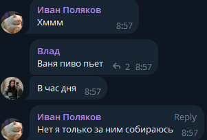 Поляков уже предвещает, в приподнятом настроение, сейчас еще пивасика бахнет и будет встречать невесту. До сих пор ума не приложу, почему выбрала его, она ведь и зарабатывает больше его