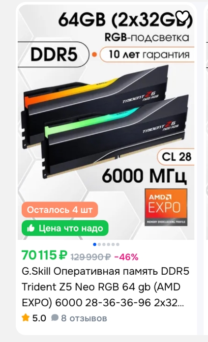 Господи, как же хорошо что я еще два года назад себе комп новый собрал сразу на ддр5 64Гб.