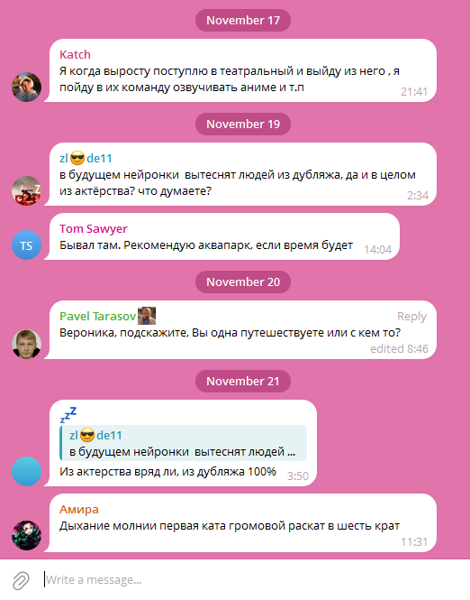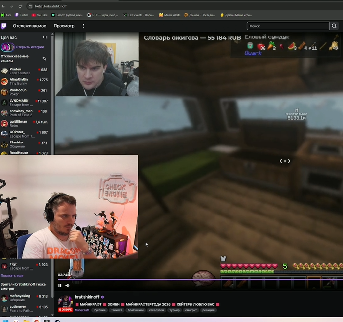 А мне нравилось смотреть утром на твиче ГТА РП от Мэда с Колаем и Джорди. А вечером Зануда устраивала кукинг стрим, а вечером снова был подруб от Элайджи...