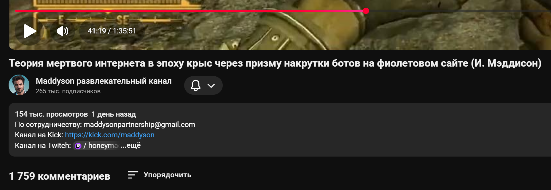 мэд на +-200000 ботов недавно стримил слэй и приглашал к сотрудничеству реков, чтобы он спал на трансляции с ботами с их баннером про кик говорил, что крутит, и что кику пофиг на крутку, просто не платят за зрителей (ну так платит казик, так как по методичке илюши онлаин важен)
